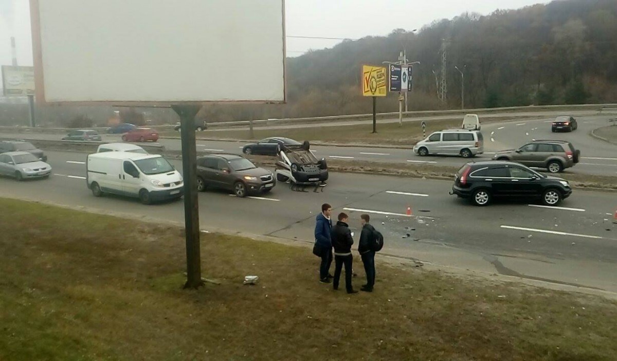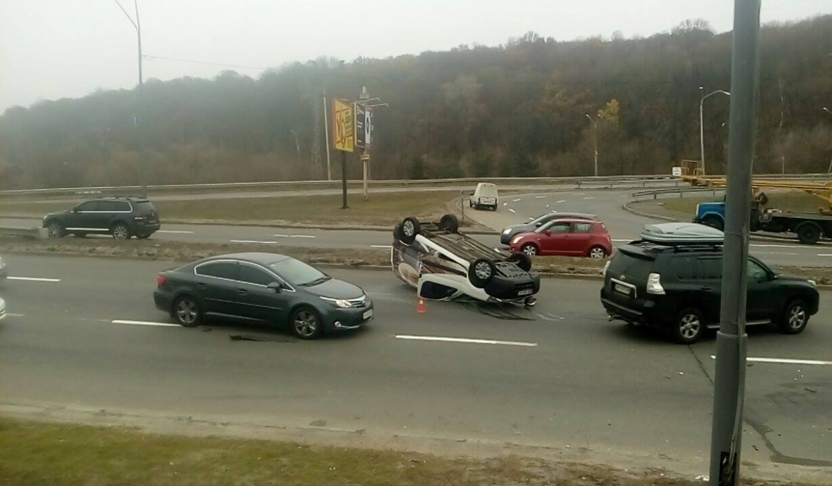 В Киеве произошло масштабное ДТП с опрокидыванием машины