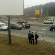 Отметим, во время аварии одна из машин перевернулась на крышу. По последним данным, столкнулись три автомобиля – Toyota, Porsche и Geely. В результате столкновения образовался затор.