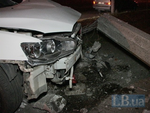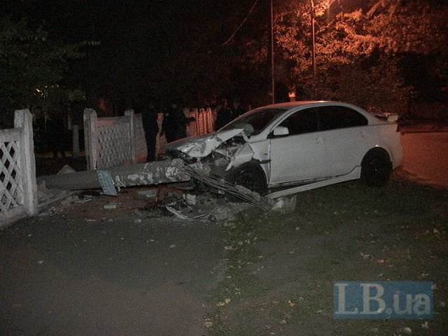 В ночь с четверга на пятницу в Дарницкий районе Киева автомобиль Mitsubishi Lance на большой скорости врезался в забор территориального отделения милиции.