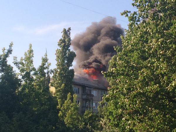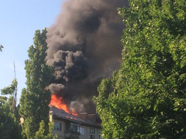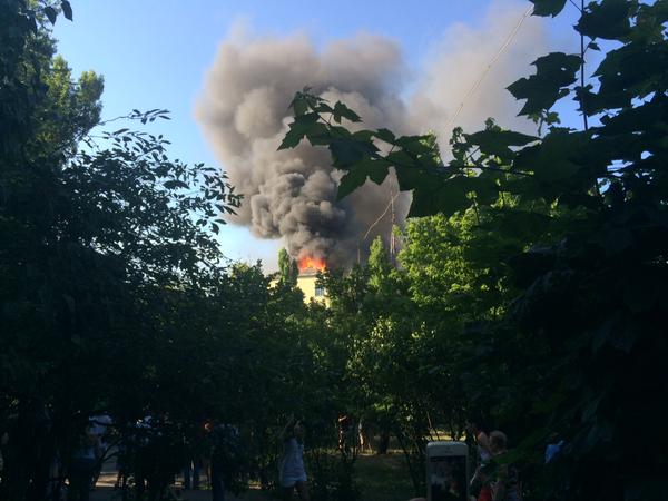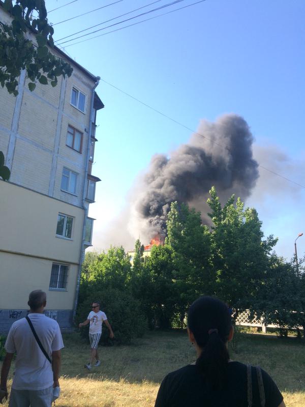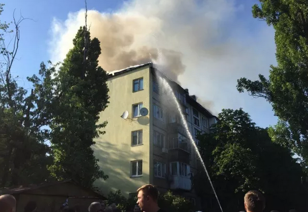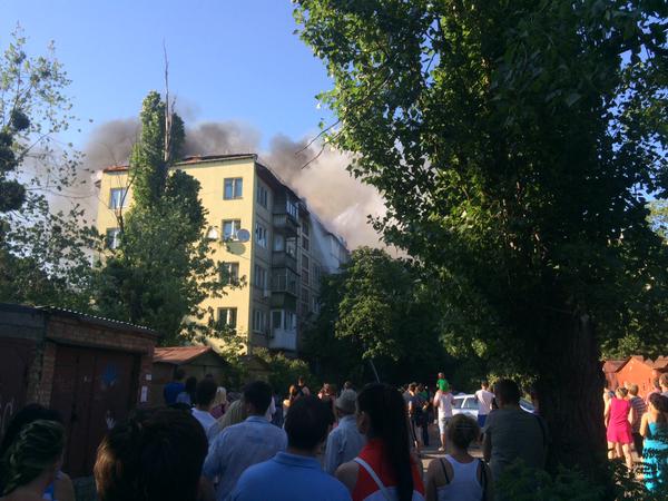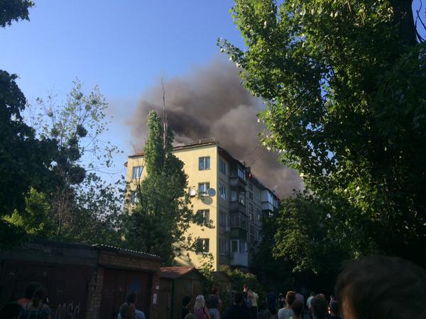Сегодня, 14 июня, в Киеве недалеко от станции метро «Дарница» на улице Строителей, 13, загорелась крыша пятиэтажного жилого дома.
