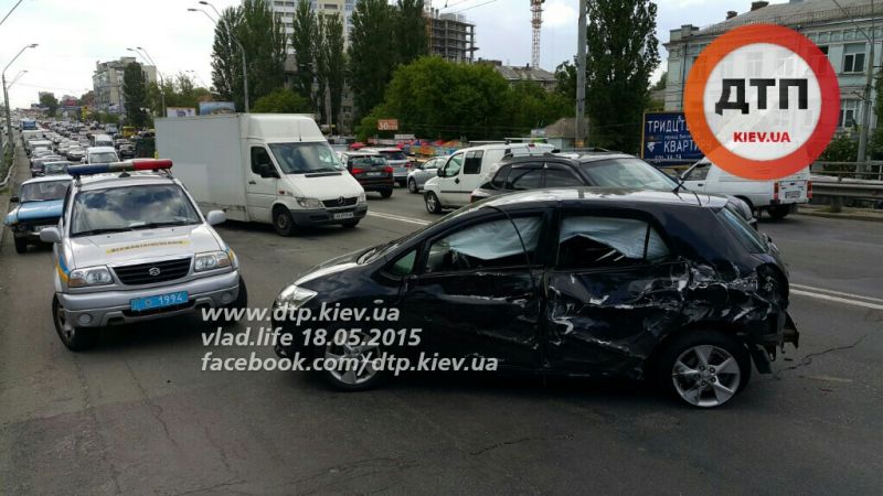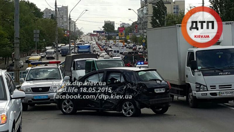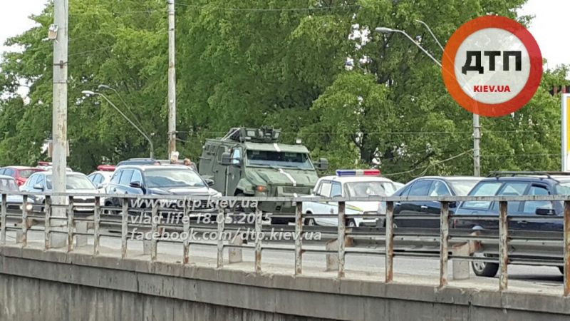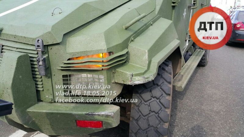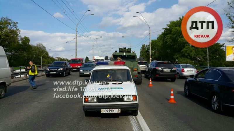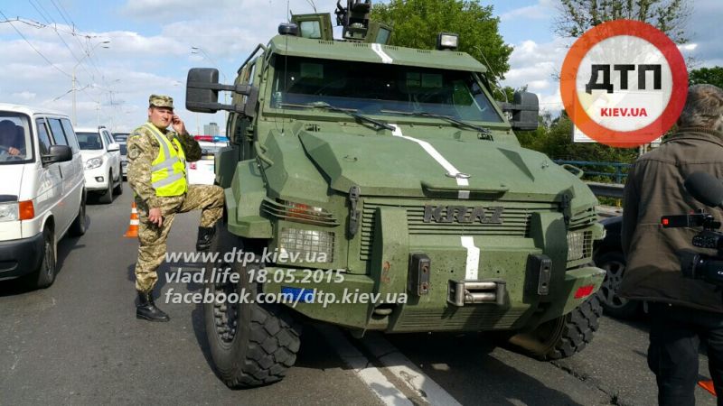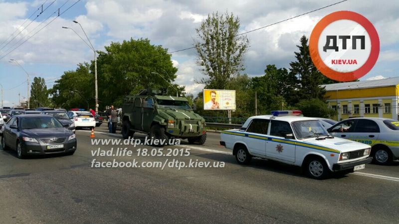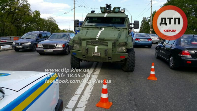 В Киеве на проспекте Победы в районе станции метро «Нивки» сегодня, 18 мая, около 16:00 военный броневик КрАЗ протаранил два автомобиля.