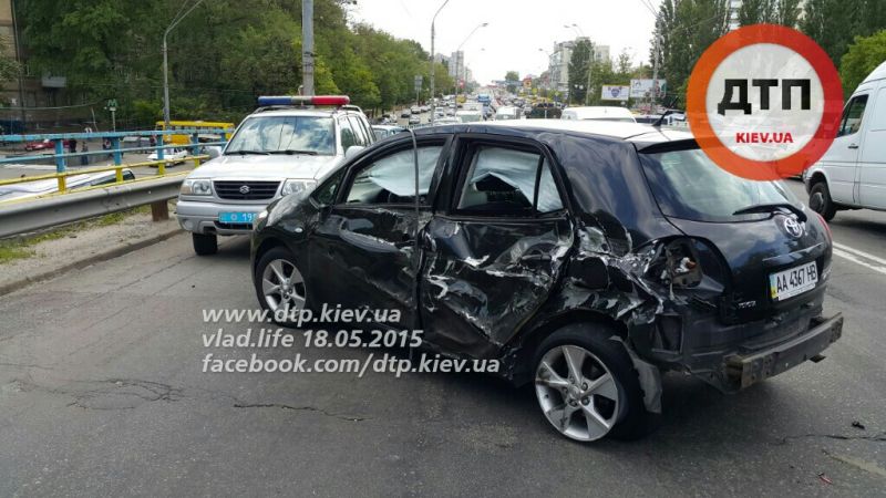 «Предварительно, водитель 9-тонного броневика КрАЗ, двигаясь по проспекту Победы от Берестейской к Нивкам, на путепроводе по неизвестной причине выехал на встречную полосу, где протаранил встречный автомобиль Toyota. От сильного удара Toyota развернуло и она врезалась в попутный «Москвич», двигавшийся в правом ряду. От удара «Москвич» врезался в отбойник. В ДТП пострадал водитель Toyota, на сторону которого произошел удар. По словам водителя КрАЗа, его, якобы, подрезали. Регистратора нет», — говорится в сообщении.