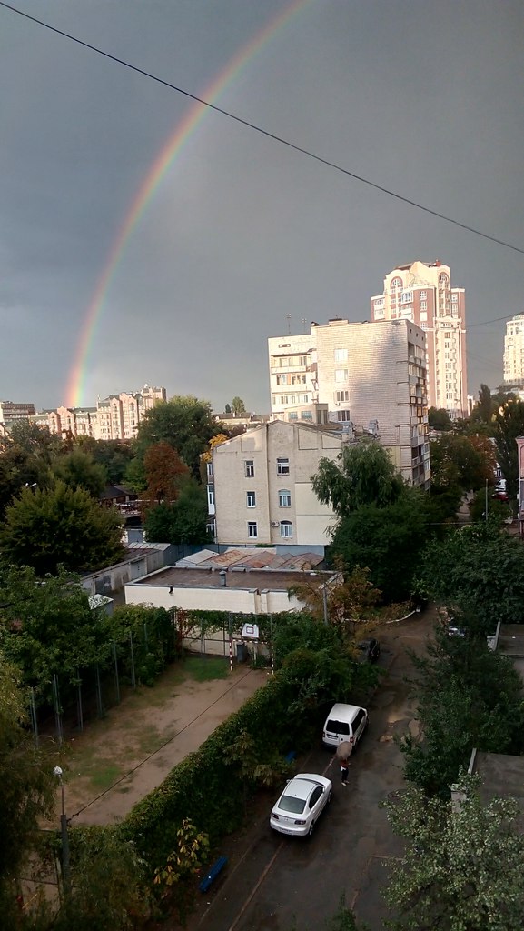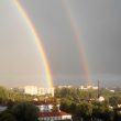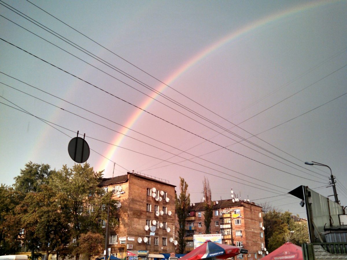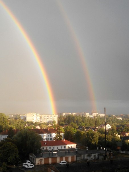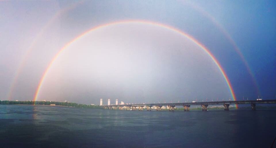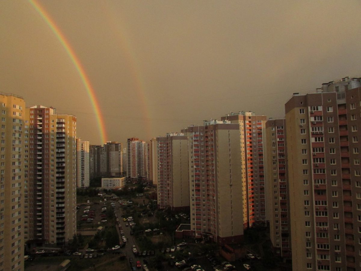 Киевляне активно публикуют в сети фотографии впечатляющего природного явления над столицей. Над городом взошла двойная радуга.