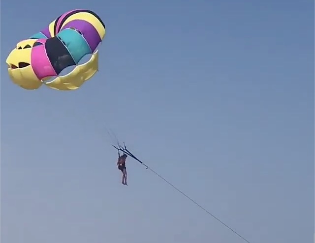 В Кирилловке отдыхающие спасли девушку на парашюте, которую начало сносить в море