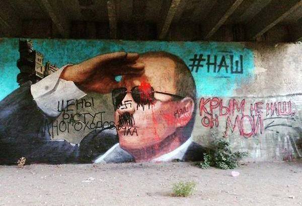 «Как всем известно, в Крым приехали жо-по-лизы путлера — маасковские ХУДОжники, и продолжают портить архитектуру Украинского Крыма, разрисовывая стены зданий и конструкций портретом Х….а. В ответ на это был объявлен конкурс-соревнование с целью восстановить былую красоту и убрать рожу гни-ды из Украинского Крыма», — отмечается в сообщении.