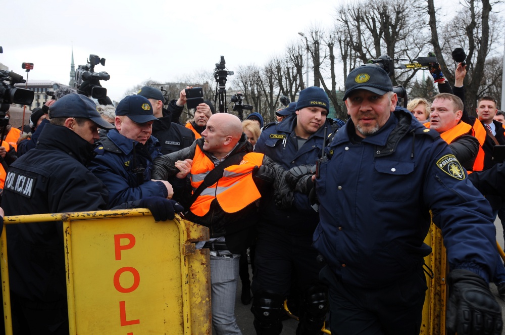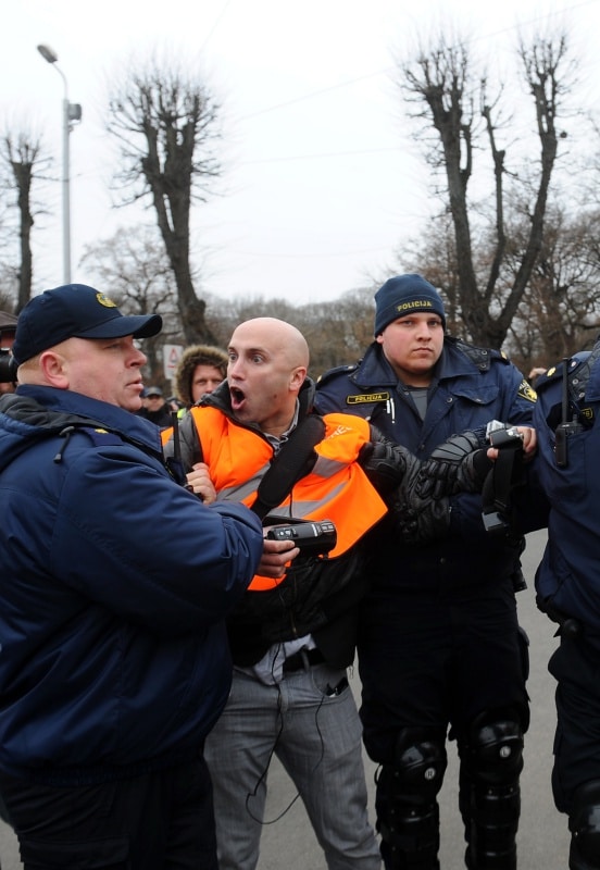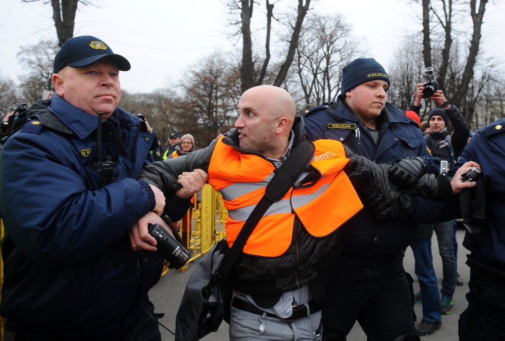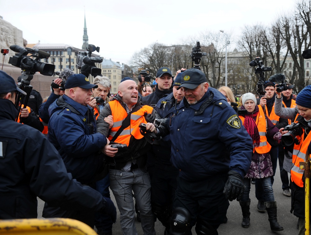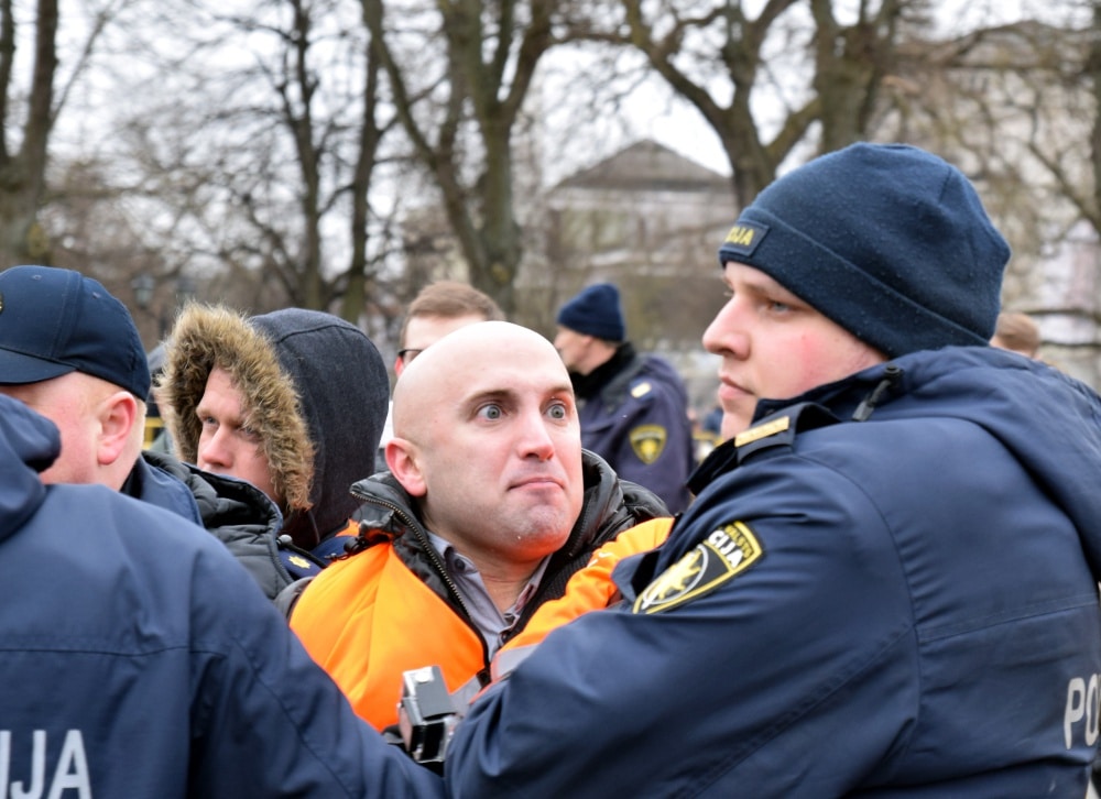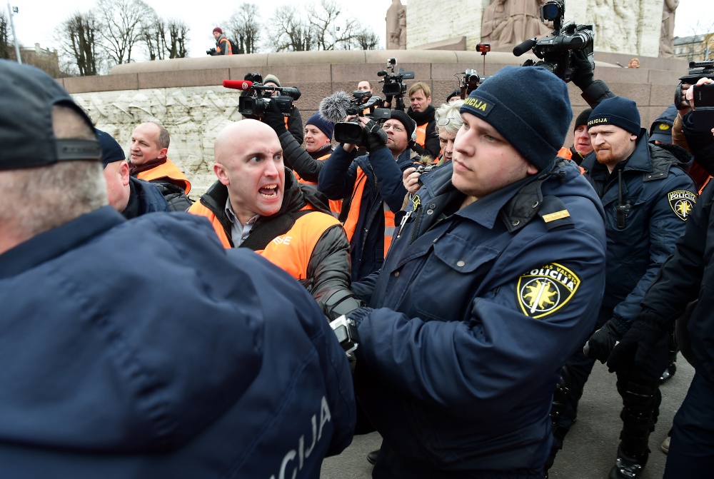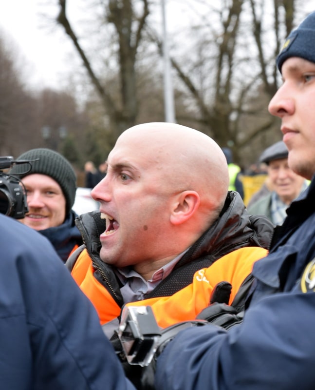 Филлипс сначала пытался возглавить колонну легионеров и их сторонников в старой Риге, однако охрана не позволила ему это сделать. Позже, уже у Памятника Свободы, Филлипс, на котором был оранжевый жилет представителя прессы, кричал «Почему вы прославляете фашизм?» и пытался добиться от участников шествия ответа на свои вопросы. В большинстве случаев попытки Филлипса были проигнорированы. Некоторые пожилые люди отказывались говорить с ним по-русски.