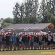 Участники стали ровными линиями, образовав собой слово «Победа».