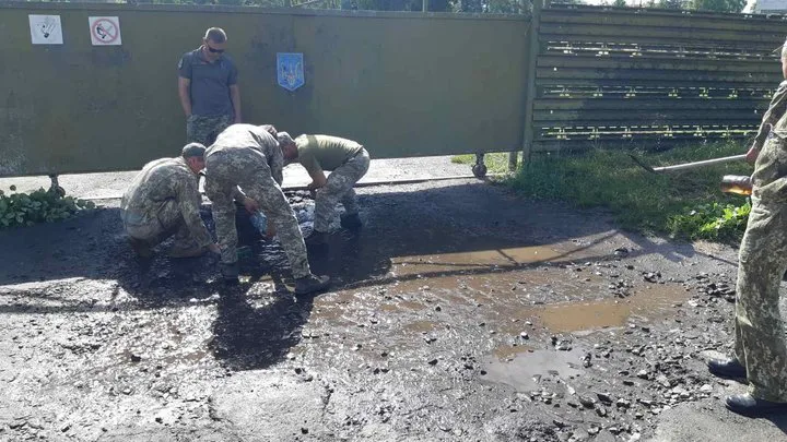 Отмечается, что командование части отдало приказ об очистке впадин от дождевой воды на выезде с летного поля на КПП под видом ремонта дороги, которого там не было примерно 20 лет.