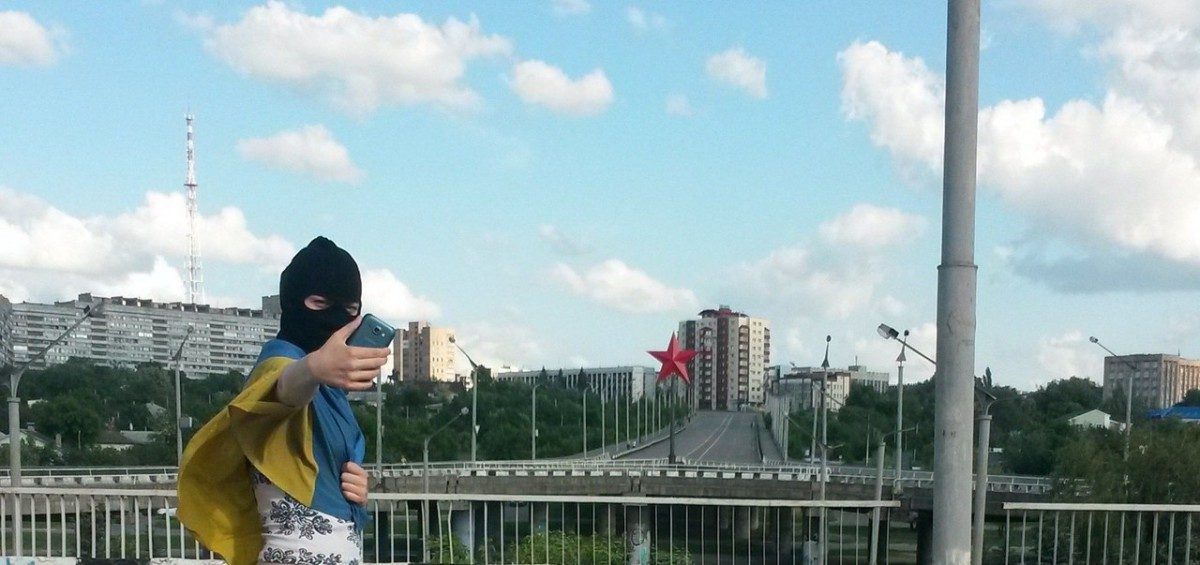 В Луганске местная жительница сфотографировалась с украинским флагом