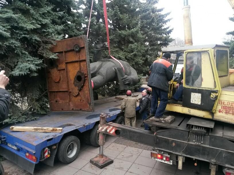 Монумент был снесен с постамента вместе с плитой, на которой стоял. Причем, как сообщает 0629, демонтаж проходил под тройной охраной. К журналисту несколько раз подходили с вопросом и интересовались, что он делает на территории комбината.