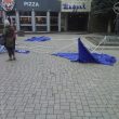 В Центральном районе Мариуполя возле памятника Высоцкому группа парней разгромила палатки «Оппозиционного блока».