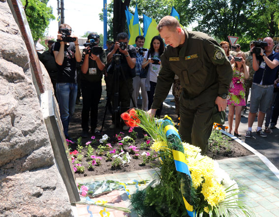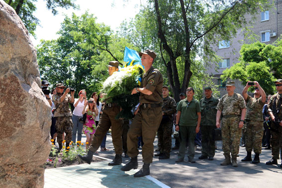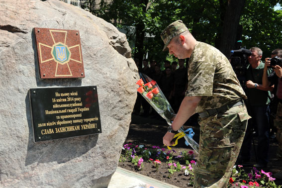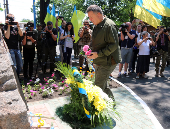По случаю годовщины освобождения Мариуполя от вооруженных бандформирований секретарь СНБО Александр Турчинов, министр МВД Украины Арсен Аваков, командующий Нацгвардии Украины Николай Балан и начальник милиции Донецкой области Вячеслав Аброськин открыли памятный знак в честь нацгвардейцев и правоохранителей, которые оказали достойный отпор при попытке захвата военной части в апреле 2014 года, сообщает пресс-служба ГУМВД Украины в Донецкой области