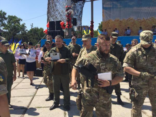 Как сообщали ранее, по случаю годовщины освобождения Мариуполя от вооруженных бандформирований секретарь СНБО Александр Турчинов, министр МВД Украины Арсен Аваков, командующий Нацгвардии Украины Николай Балан и начальник милиции Донецкой области Вячеслав Аброськин открыли памятный знак в честь нацгвардейцев и правоохранителей, которые оказали достойный отпор при попытке захвата военной части в апреле 2014 года