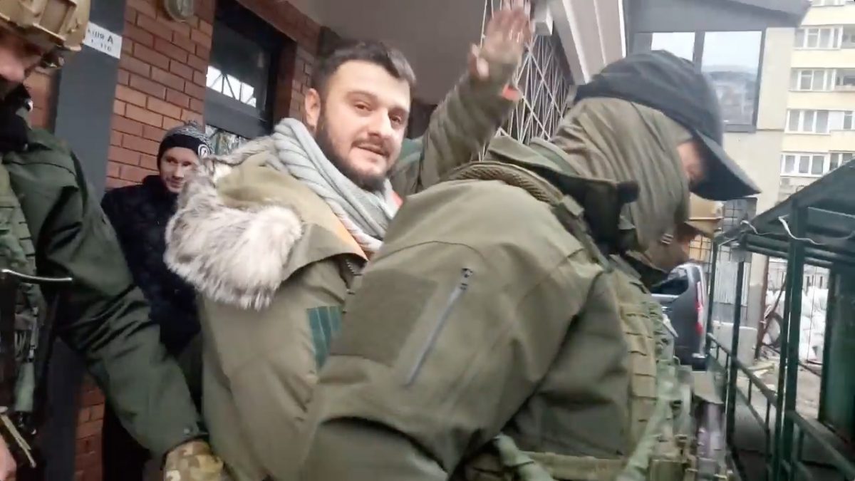 На записи видно, как сотрудники НАБУ в масках и с оружием выводят из здания и увозят сына главы МВД — Александра Авакова. При этом задержанный ведет себя спокойно и даже машет рукой прессе.