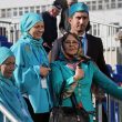 Затем участники церемонии зашли в мечеть, перед входом в главный зал гостям, следуя мусульманской традиции, пришлось разуться. Свою обувь у входа в зал также оставили и Путин, и члены российской делегации. Этому примеру последовали президенты Пакистана и Турции, а также другие гости.