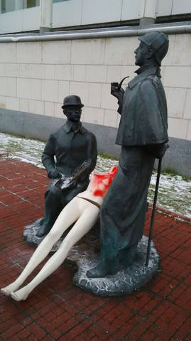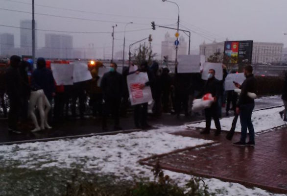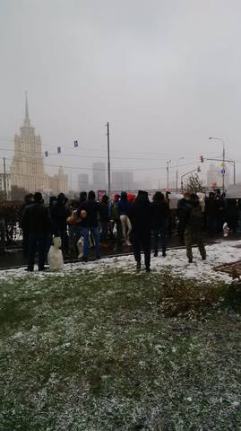 К резиденции посла, по данным агентства «Интерфакс», прибыли 10-12 человек на «Газели». Они выгрузили несколько манекенов, облитых красной краской, и перебросили их через забор.