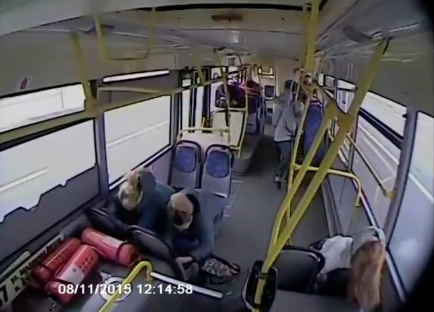 На видеозаписи с камер наблюдения видно, что водитель автобуса уснул за рулём и потерял контроль над транспортным средством.