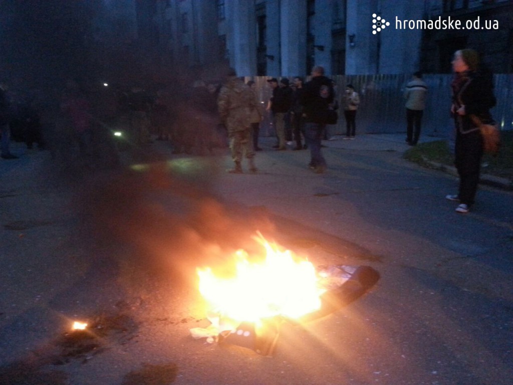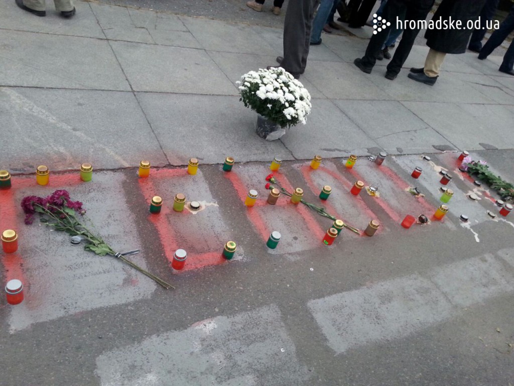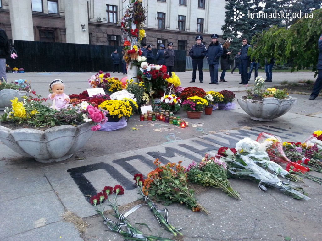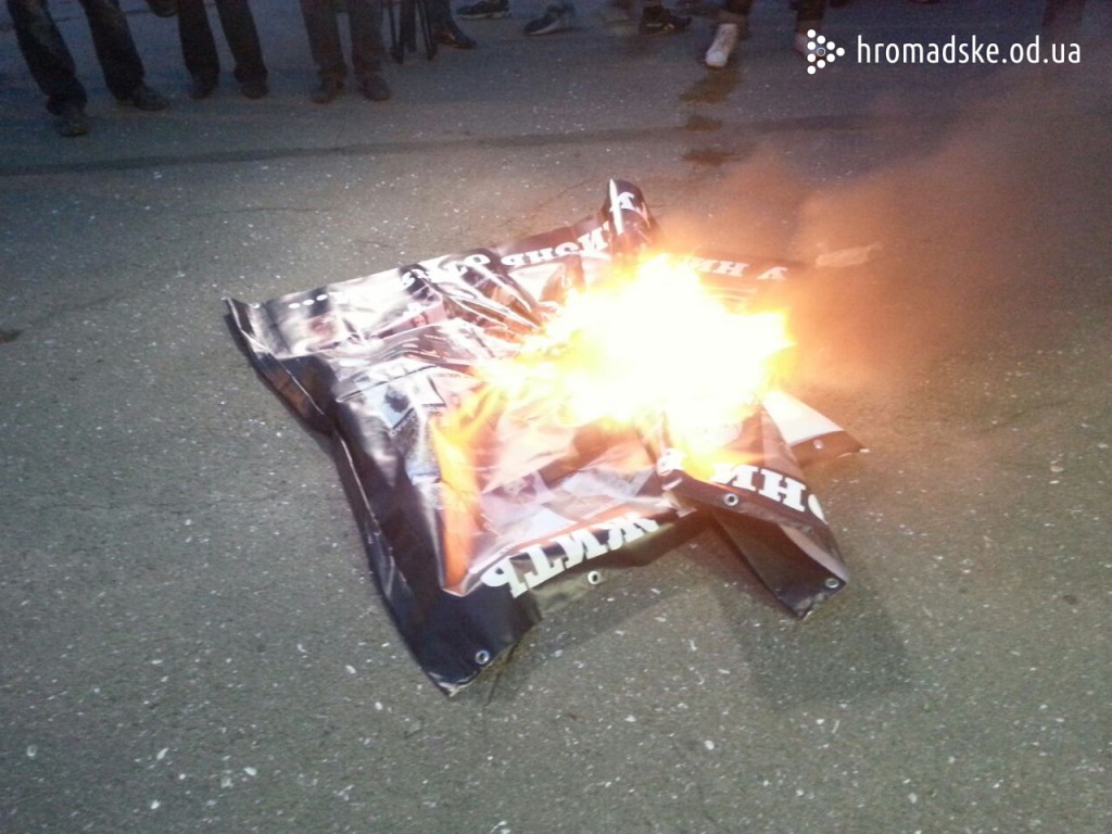 В Одессе на Куликовом поле несколько десятков человек собрались, чтобы почтить память погибших в Доме профсоюзов 2 мая 2014 года. Туда же прибыли и активисты «Автомайдана», которые спалили баннер с портретами погибших.