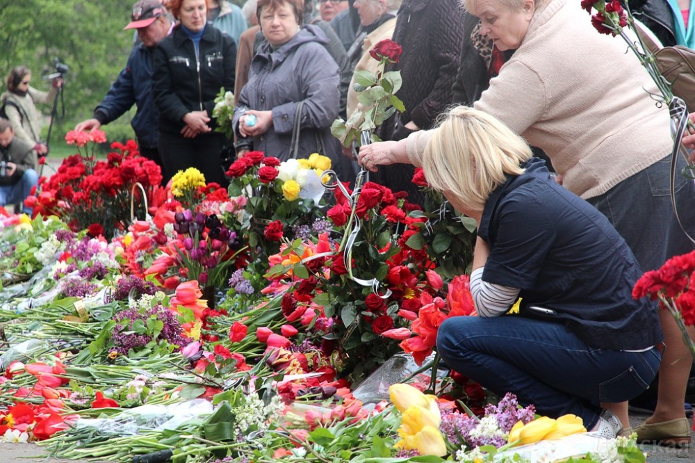 Траурный митинг начался в 14:00, однако люди начали нести цветы к Дому профсоюзов еще с утра. Чтобы попасть на митинг, люди проходят через металлодетектор. Обстановка спокойная. Напомним, за происходящим следят более тысячи правоохранителей.