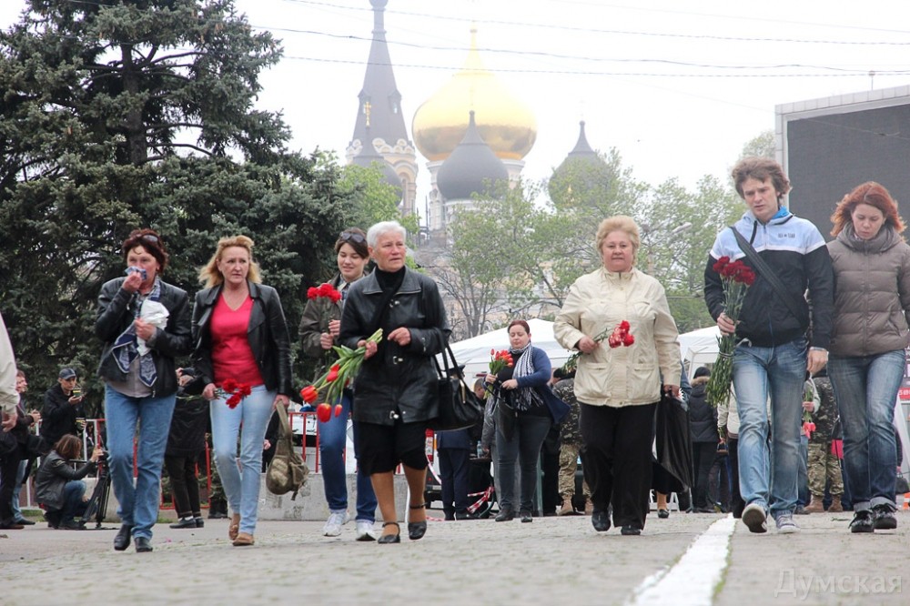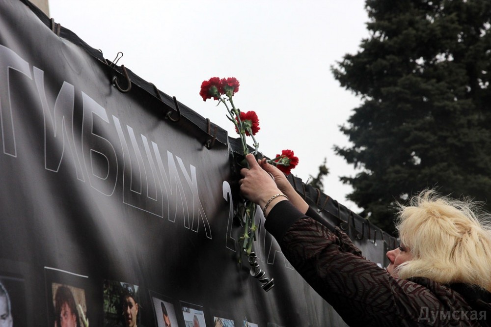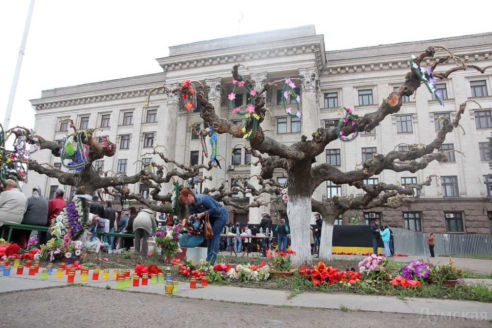 Одесситы пришли почтить память 42 человек, погибших там в результате трагических событий 2 мая прошлого года.