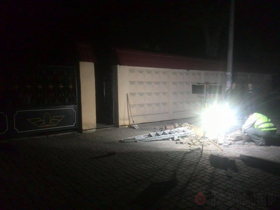 «Неизвестные подняли чугунный люк и бросили взрывное устройство в колодец телефонной связи у главных ворот базы. Взрывная волна подбросила и разбила верхнюю часть технического колодца и разбросала тротуарную плитку на несколько метров. Взрывотехники на месте нашли остатки серого вещества и констатировали, что взрывное устройство было небольшой мощности, так как вызвало малые разрушения. Местные охранники рассказали, что за несколько минут до ночного инцидента к квартале вдруг выключили свет, поэтому камеры наружного наблюдения не сработали на неизвестных диверсантов», — сообщают журналисты телеканала.