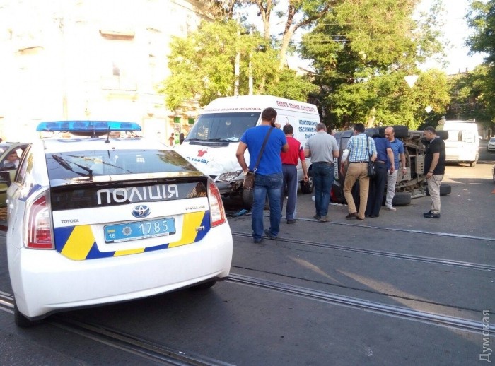 В Одессе 11 июля произошло тройное ДТП с участием автомобиля патрульных полицейских Toyota Prius.