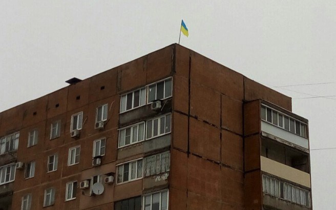 В Сети опубликовали фотографию с украинским флагом, который появился утром в субботу, 4 февраля, на одном из многоэтажных домов в оккупированном боевиками Донецке.