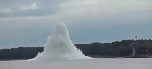 На видео, опубликованном Главным командованием Вооруженных сил Польши, видно, как взрыв поднял в воздух большой столб воды.