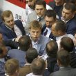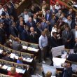 Для голосования за закон №4288 депутаты от БПП вернулись на свои места. Сразу же после голосования депутаты от РПЛ бросились к трибуне, где и возникла потасовка с депутатами от БПП, которые после голосования также вернулись к трибуне.