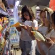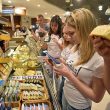 На «запрещенные» товары девушки клеили огромные наклейки с медведем, яростно оскалившимся на американский флаг, и крупной надписью «санкционный продукт». Яркие стикеры выглядели как рекламный ход — чтобы покупателю не приходилось долго искать качественные продукты. Но «хрюш» это не смущало — они радостно фотографировали наклейки на свои IPhone.