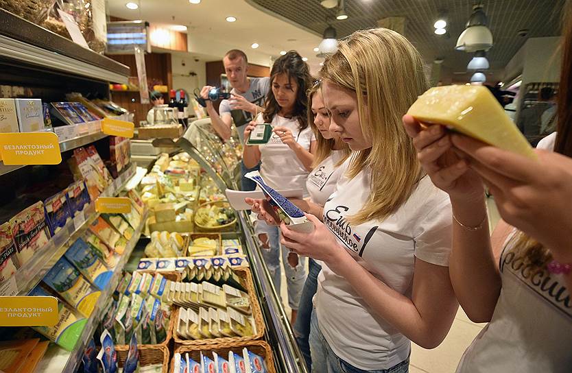 «Вот посмотрите на швейцарский сыр — он явно незаконно попал на прилавок,— грозно нахмурившись, рассказывала активистка Маргарита Черкашина, наклеивая стикер на упаковку.— Только те товары, которые произведены зарубежными компаниями на территории РФ, могут считаться качественными». Узнав от журналистов, что против Швейцарии никаких санкций введено не было, госпожа Черкашина быстро сняла наклейку с упаковки. «Девочки, ну что же вы мне такое подсунули?» — упрекнула она подчиненных.