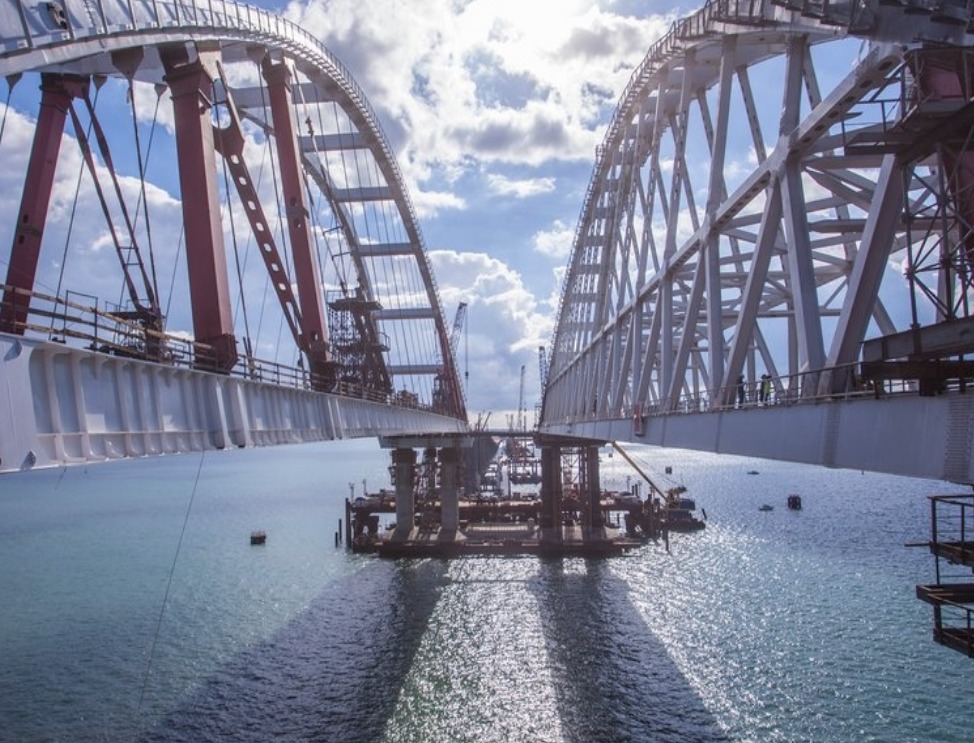 Астахов отметил, что уже полтора года работы идут на восьми морских и сухопутных участках. Ранее строители выполнили уникальную операцию по установке автодорожной и железнодорожной арок моста.