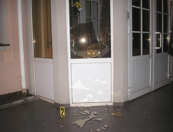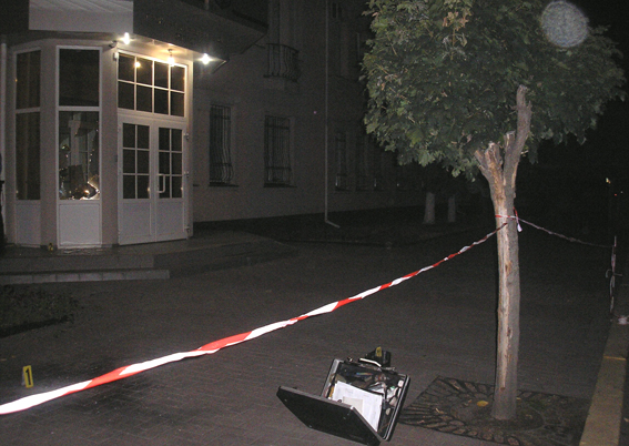 Следственно-оперативная группа, которая выехала на место происшествия во главе с руководством областного управления милиции, установила, что в результате взрыва обломками повреждены четыре окна на первом этаже и два — на втором в виде отверстий диаметром до одного сантиметра. На покрытии плитки тротуара возле входа в помещение прокуратуры обнаружена воронка диаметром 8-9 сантиметров и глубиной почти 9 миллиметров. С места происшествия изъяты остатки взрывного устройства, которые направлены в Научно-исследовательский экспертно-криминалистический центр для проведения экспертизы.