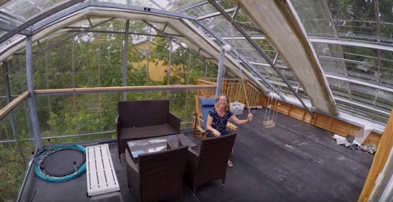 Любимое место у семьи — это стеклянная крыша. Здесь они принимают солнечные ванны, играют с сыном, читают или качаются на качелях.