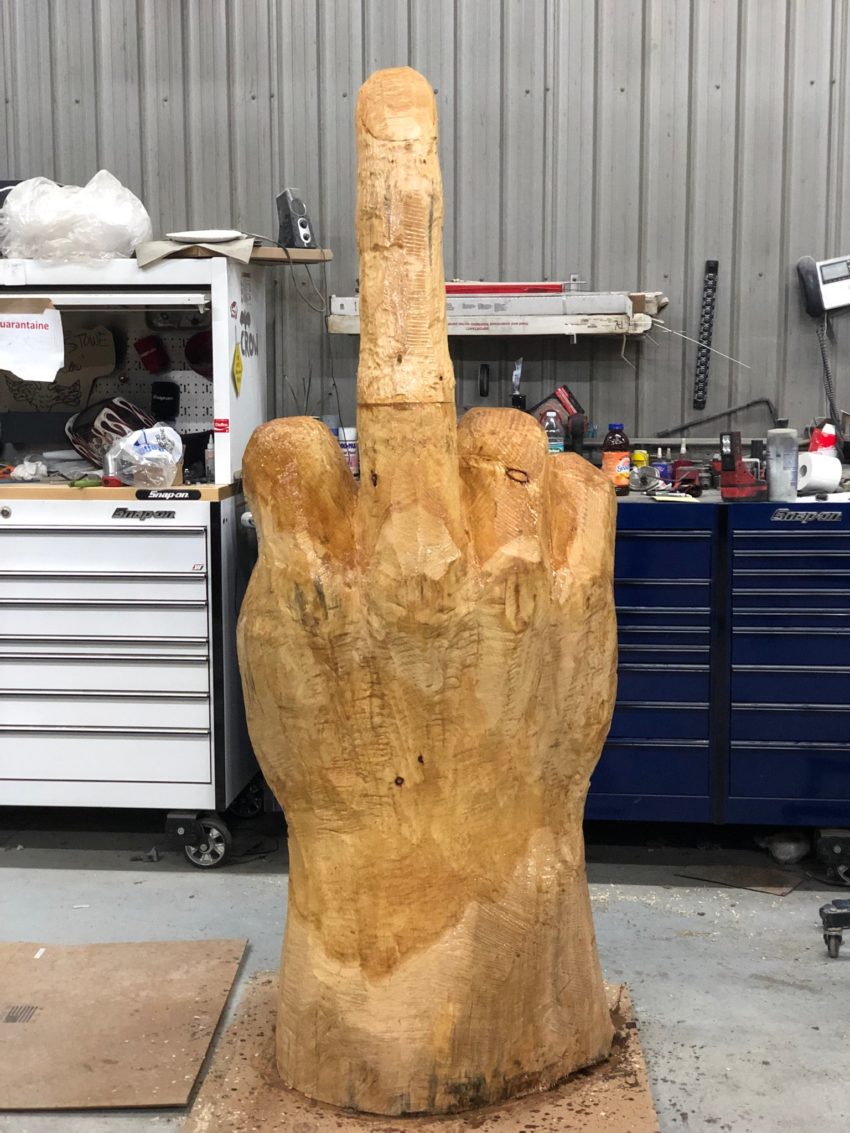 Житель американского города Уэстфорд (штат Вермонт) Тед Пелки установил на столбе возле трассы огромную деревянную скульптуру руки, показывающей средний палец. По словам американца, таким образом он обратился к местным властям, которые более 10 лет не выдавали ему разрешение на строительство гаража.