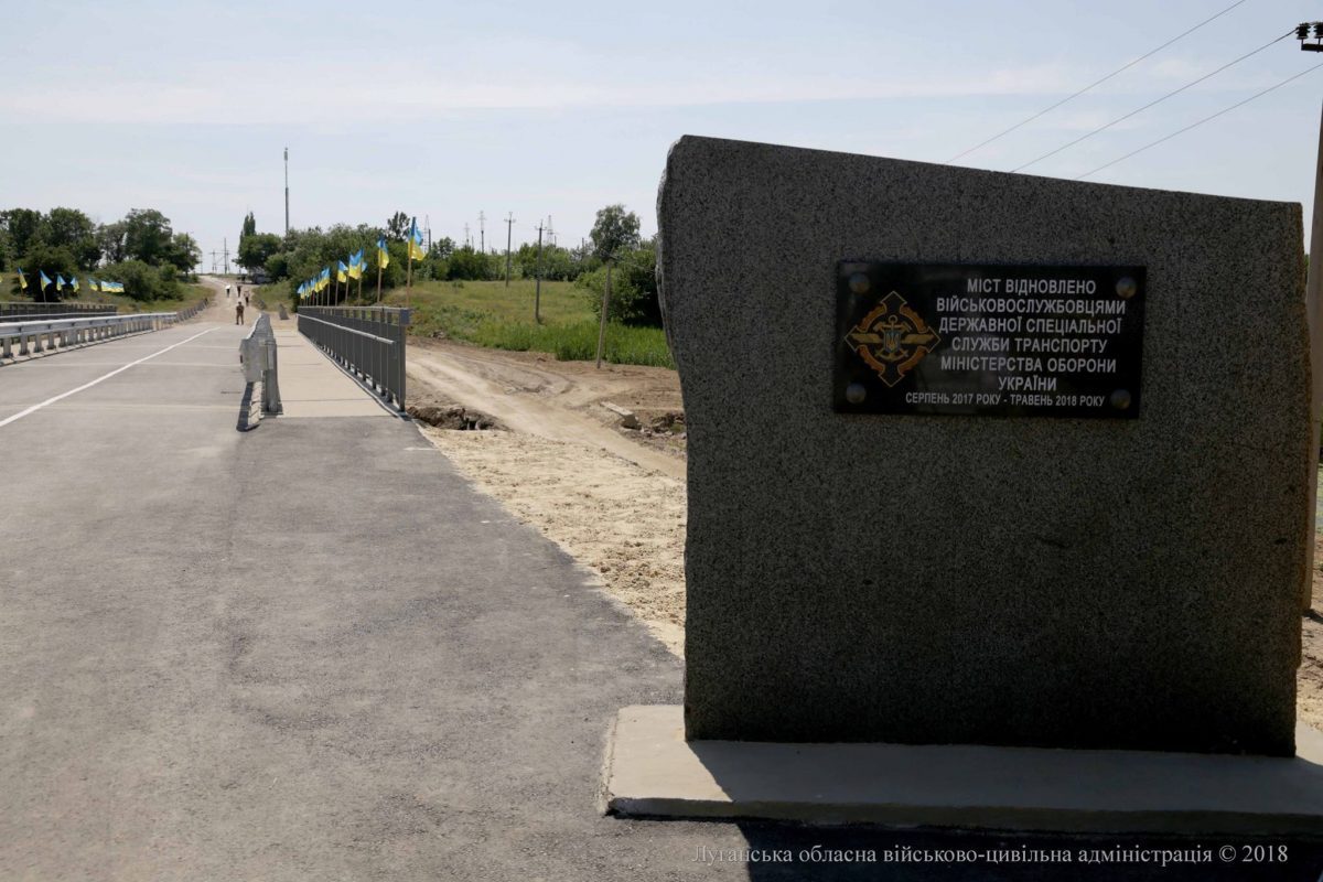 Это уже второй мост на Луганщине, в восстановлении которого приняли участие военные. Так, в октябре 2017 года был отстроен автомобильный мост через р. Северский Донец, соединяющий Лисичанск и Рубежное.