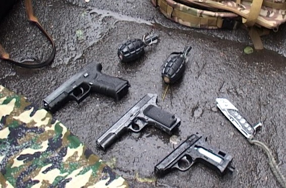 «Работники полиции при проверке его личных вещей изъяли три пистолета, две гранаты, две балаклавы, нож и поддельные документы, в том числе и удостоверения работников СБУ и МВД», — рассказал начальник полиции Киева Александр Терещук.