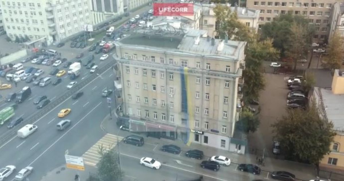 28 сентября в центре Москвы из окна шестиэтажного дома вывесили флаг Украины. Соответствующее видео появилось в YouTube.