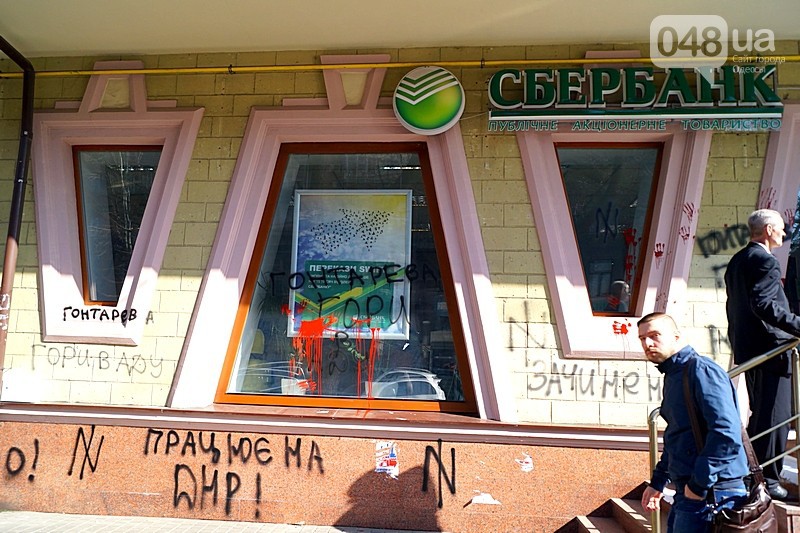 В Одессе сегодня днем напали на здание «Сбербанка» России, расположенное в самом центре города, на углу улиц Жуковского и Польской. Об этом сообщает местное издание 048.ua.