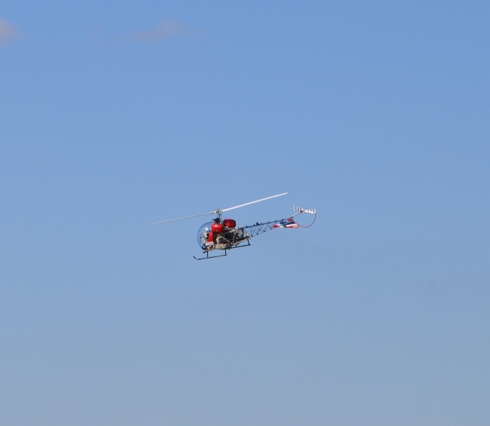 В вертолете есть три места в кабине и два специально оборудованных эвакуационных бокса с бортов. Он создан по одновинтовой схеме с рулевым винтом, а базовая платформа — вертолет Bell-47.