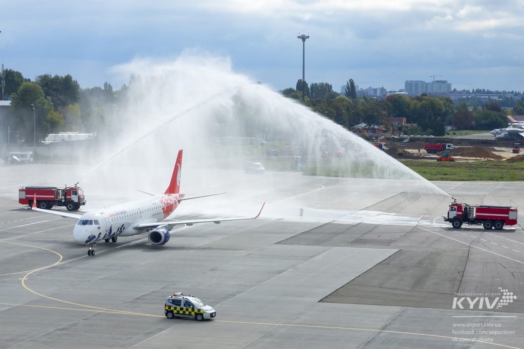 Во вторник, 5 сентября, в Международном аэропорту «Киев» («Жуляны») приземлился первый самолет азербайджанской лоукост авиакомпании Buta Airways. Первый рейс по традиции встретили водным салютом, сообщает пресс-служба аэропорта.
