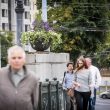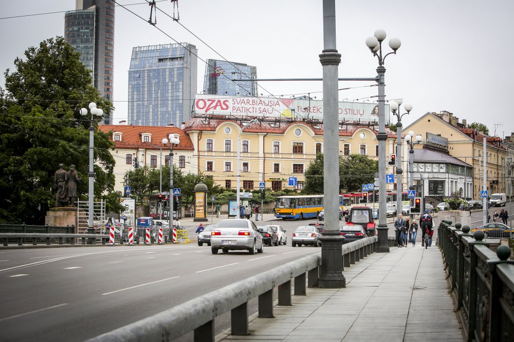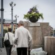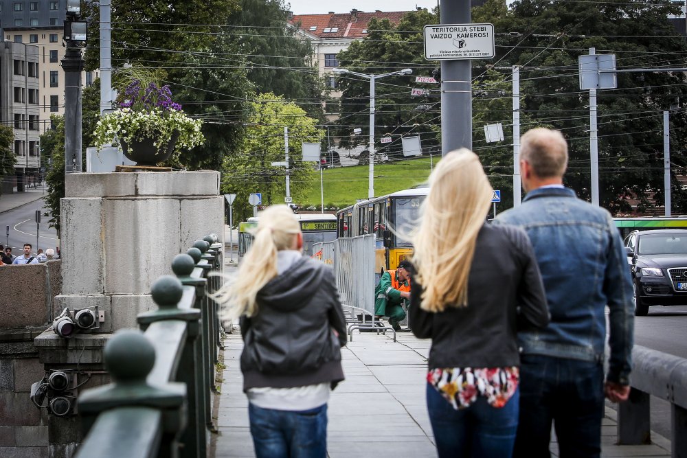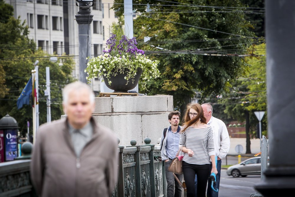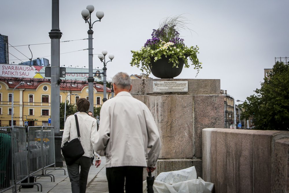 В понедельник утром на Зеленом мосту в Вильнюсе уже не было скульптур рабочих и военных. Вместо них на постаментах появились цветы в больших вазонах.