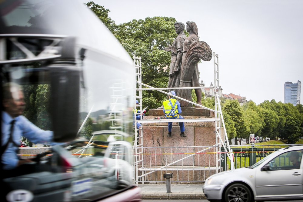 Скульптуры снимают потому, что они находятся в аварийном состоянии, но мэр Вильнюса Ремигиюс Шимашюс не скрывает, что реставрировать и возвращать их не планируется.