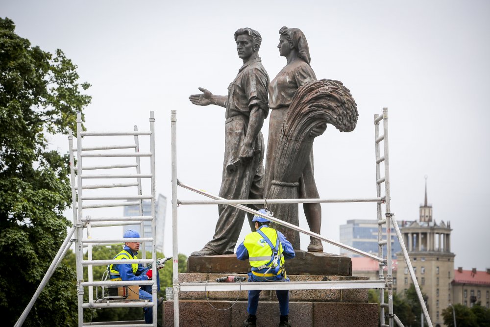 Скульптуры рабочих и военных были сняты первыми, так как их состояние самое плохое. Планируется завершить работы в среду – снять скульптуры крестьян и студентов.