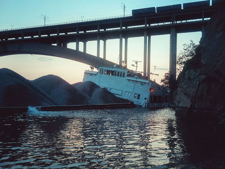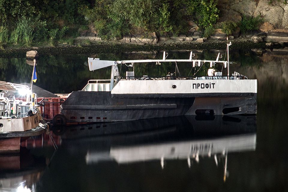 На Днепре в Запорожье вчера, 27 августа, сухогруз «Профит», груженый щебнем, сел на мель прямо в черте города, рядом с мостом, ведущим на остров Хортица.