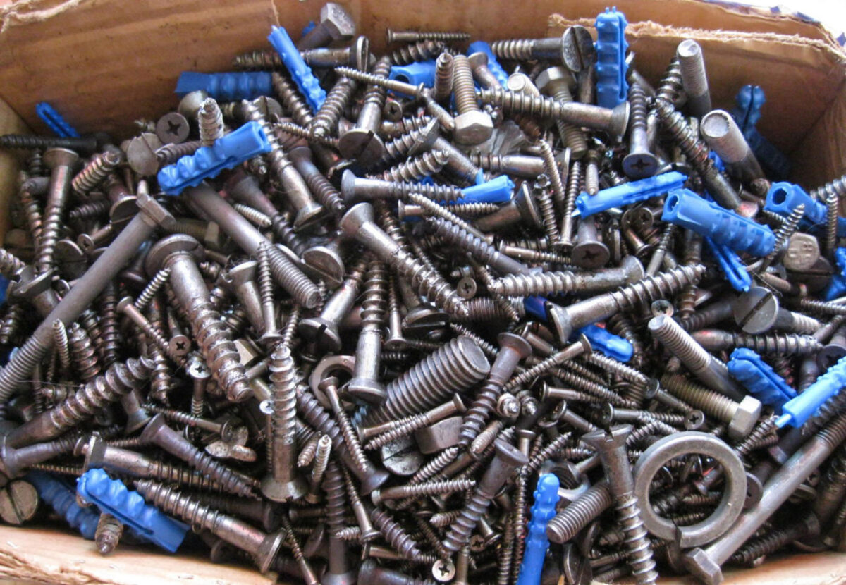Весь этот хлам давно пора выкинуть, если не хотите выглядеть в глазах своих гостей как нищеброд-скопидомщик. Да и в целом — лучше один раз пожалеть, что под рукой нет какого-то шурупа и пойти купить его в хозмагазине, чем 30 лет смотреть на этот ржавый хлам.