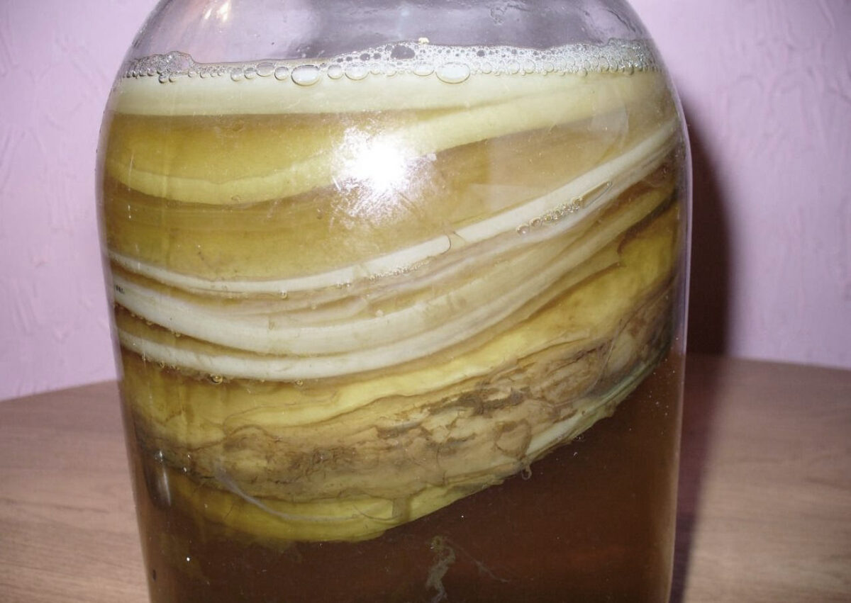 Страшная вещь, появившаяся ещё в СССР и кое-где продолжающая использоваться. Для тех, кто не знает, что это такое, вкратце расскажу — в трехлитровую банку, накрытую пожелтевшей марлей, наливается чай и помещается часть субстанции, называемой «чайным грибом». Затем оно там всё киснет, и на выхлопе получается напиток, чем-то напоминающий квас. Однажды ещё в СССР я попробовал это питьё (угостили соседи), но когда увидел, как он получается, охота его пить пропала — банка с чайным грибом выглядит крайне отвратительно и напоминает то ли какую-то больничную ссанину, то ли маринованные блины, то ли какого-то заспиртованного пришельца из Кунсткамеры. И да, оно там внутри живое и периодически попёрдывает в воду пузырьками.