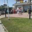 В само здание ресторана быстрого питания пускают не всех сразу, поэтому люди стоят в ожидании на 40 градусной жаре. Девушка, которой по внешнему виду 16 лет, упала в обморок от жары