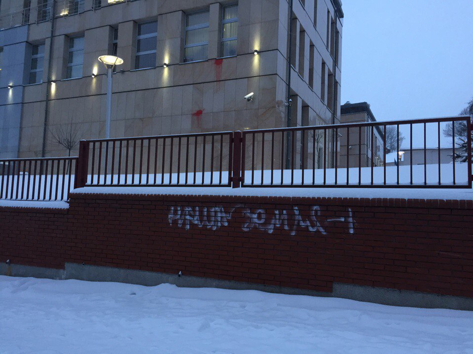 Неизвестные написали на заборе генерального консульства Польши во Львове фразу «Наша земля», а на само здание нанесли несколько пятен красного цвета. Об этом сообщили в отделе коммуникации Главного управления Национальной полиции во Львовской области.