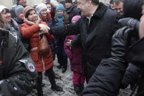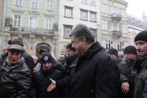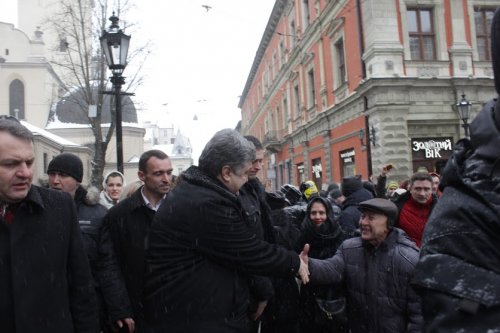 На президента львовяне реагировали по-разному. По дороге многие жали руки президенту. Другие же издалека выкрикивали требование продать Rosen.